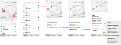 Working with the product team, I mapped user flows across both the field experience and the supervisor dashboard, from initial hazard detection to incident escalation. This helped align stakeholders on where the system needed to support automation, visibility, or fast human response.
